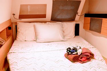 This 2015 Bali 4.5 - 3 available-cabins with 2 private ensuite (as one cabin is occupied by crew) designed with Open Space living in mind with large interior and exterior living spaces